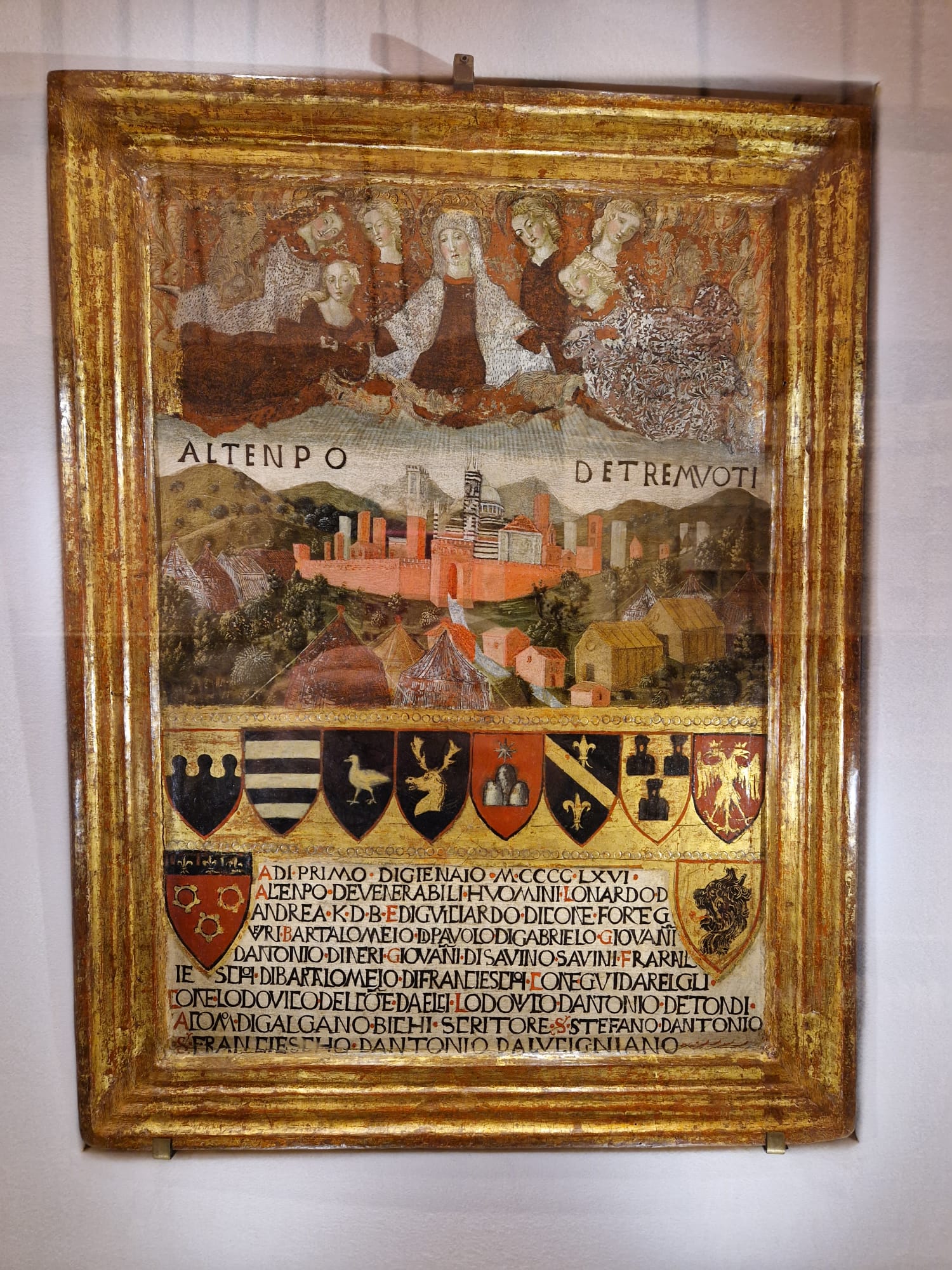 Delle 105 opere esposte a noi interessa la n. 49, la già citata tavoletta di Gabella de “La vittoria di Porta Camollia a Siena del 1526”, realizzata da Giovanni di Lorenzo Cini (Siena 1487?-1562) che “fotografa” il momento in cui i senesi vittoriosi si impadroniscono delle artigliere nemiche che poi portano dentro le mura come bottino di guerra.