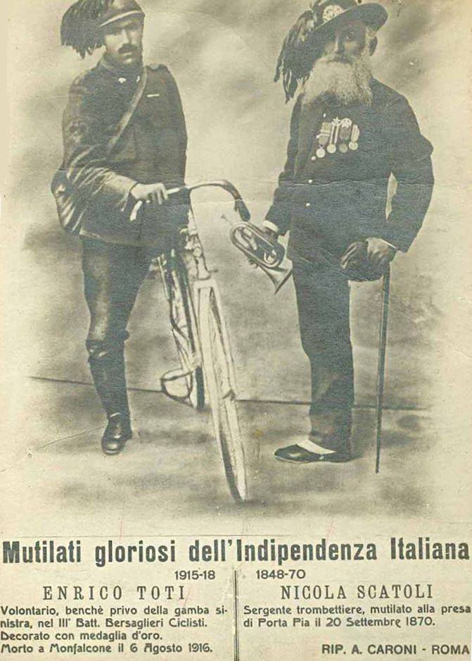 Scatoli, divenuto trombettiere, faceva parte del drappello che agli ordini del Maggiore Giacomo Pagliari, morto in quegli eventi, suonò la tromba per incitare i fanti piumati all’attacco.